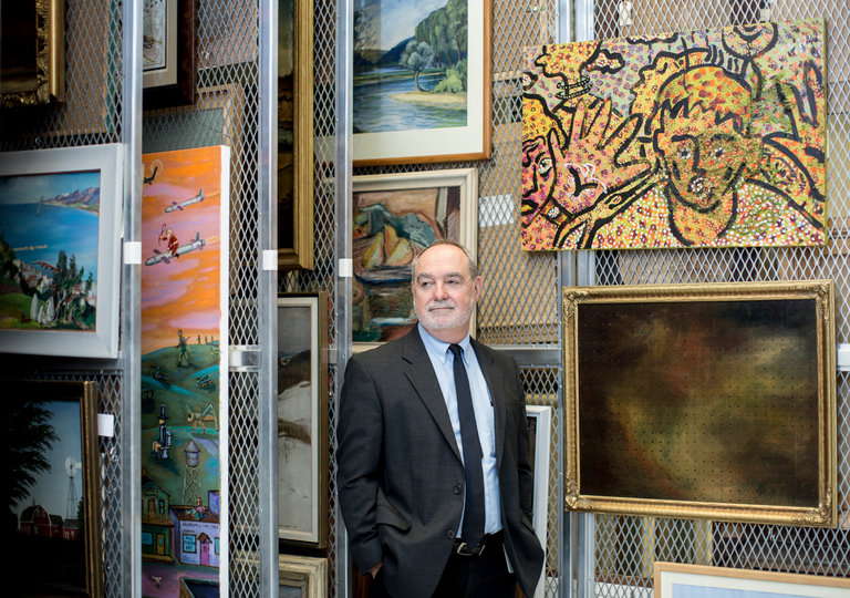On a tour of the climate-controlled vaults of the Minnesota Historical Society — where the bulk of the institution’s 6,000 works of art are stored — Brian Szott pointed to a pastoral painting of a farmhouse blanketed in snow.